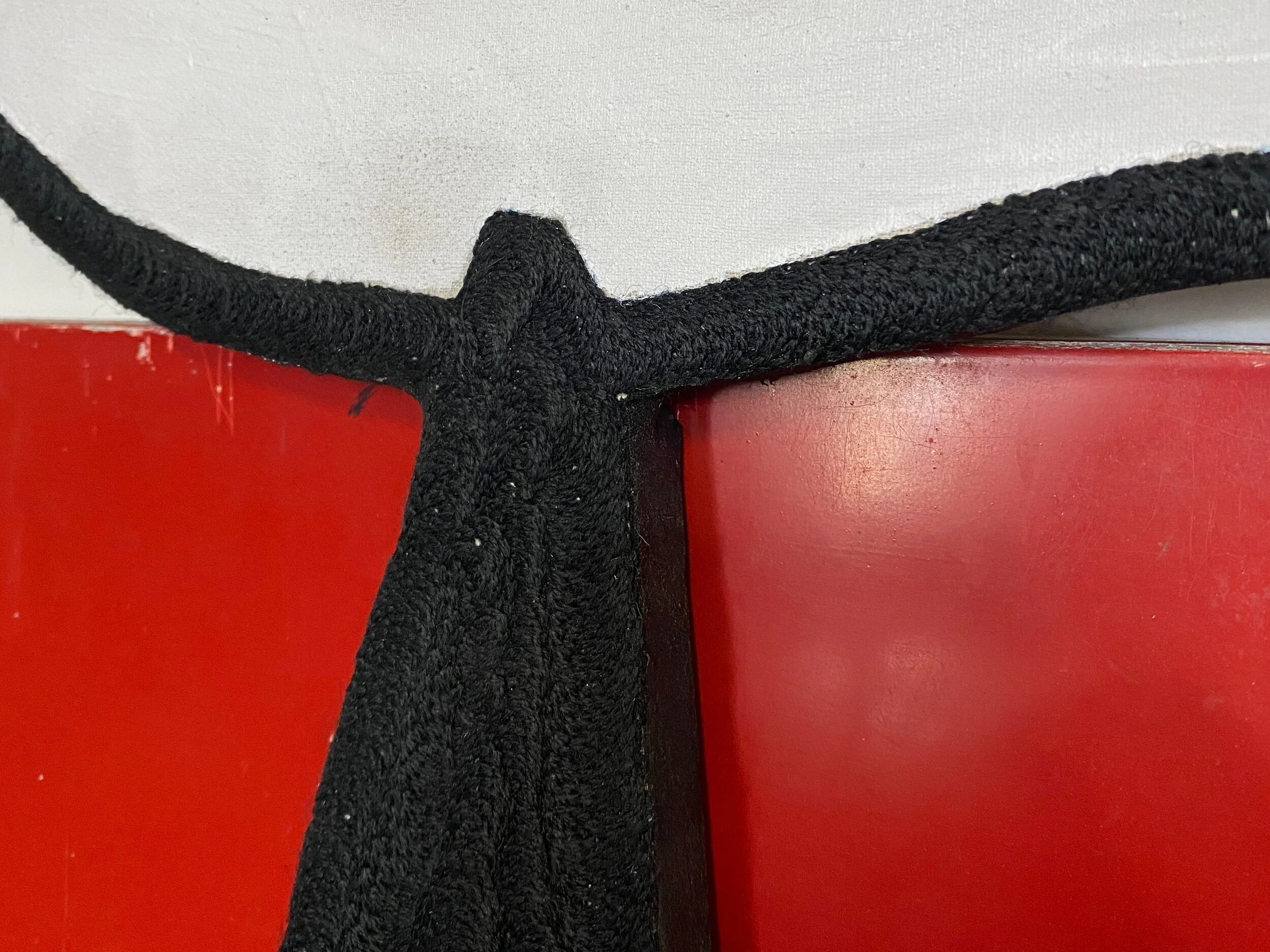 Chainstitch embroidery with acrylic paint on canvas, stretched over custom woodcut Snoopy, mounted to a vintage Marlboro gas station sign. 48in x 52in